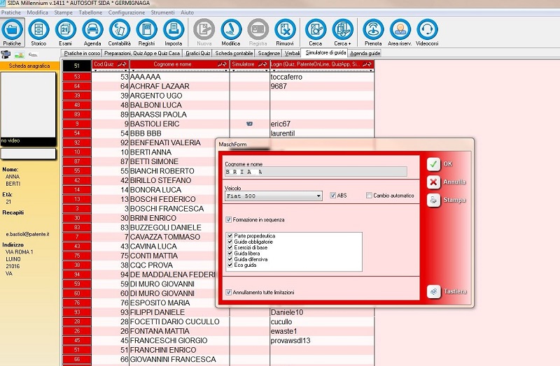 Il ragazzo che vuole esercitarsi sul simulatore non dovrà fare altro che inserire la tessera con le proprie credenziali nel lettore card collegato al simulatore! Il simulatore riconoscerà il candidato e lo abiliterà agli esercizi che l'insegnate avrà impostato da SIDA Gestione.