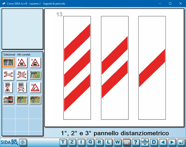 partendo dal quiz che riguarda il pannello con tre barre oblique rosse posso visualizzare tutti gli integrativi collegati a questa immagine.