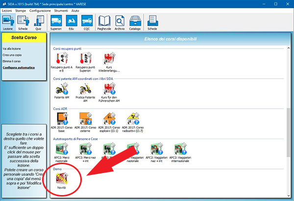 Tutto il materiale didattico nuovo o modificato è visibile dal corso Demo: Novità