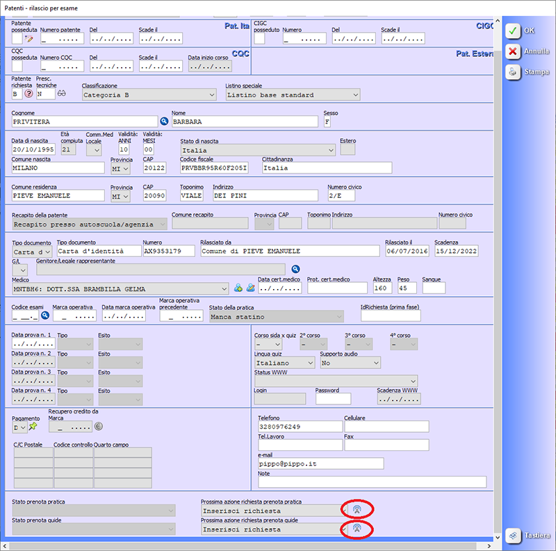 Situazione precedente: la data di rilascio della patente non era corretta in quanto relativa non al documento patente ma ricavata dalle abilitazioni, mentre la data scadenza non veniva ricavata e doveva essere inserita a mano, come da figura seguente: