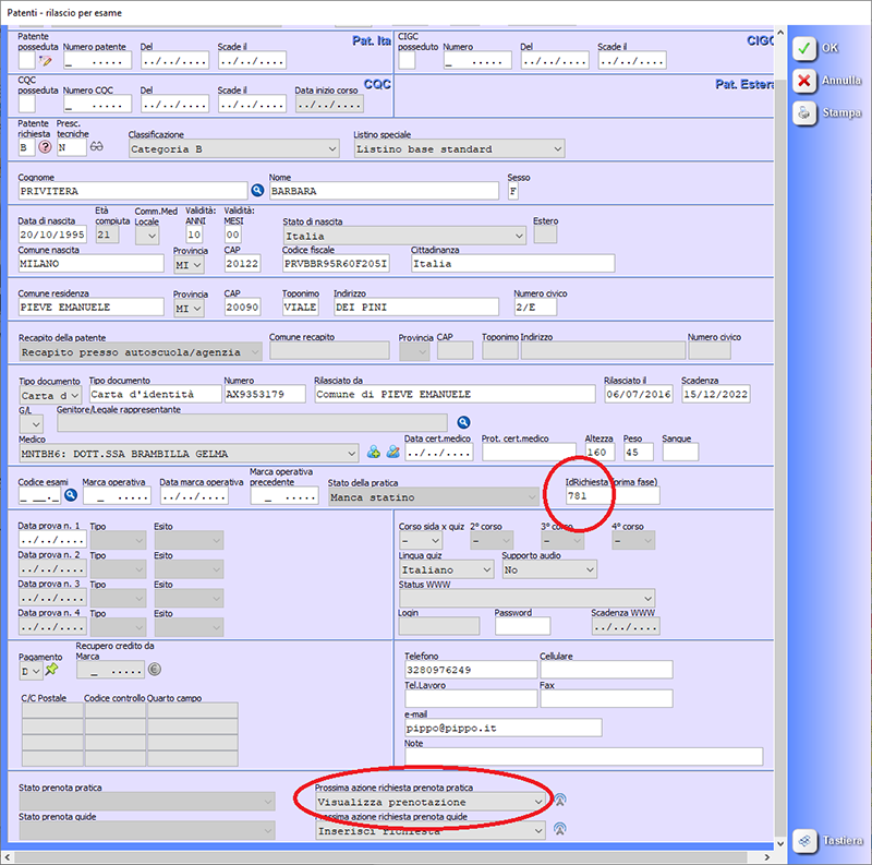 - ... nel frattempo il medico completa la pratica con i dati medici (stato prenotazione "ATTIVO")