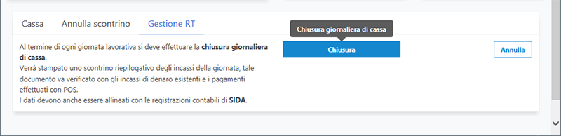 - Procedura di annullamento degli scontrini e chiusura cassa