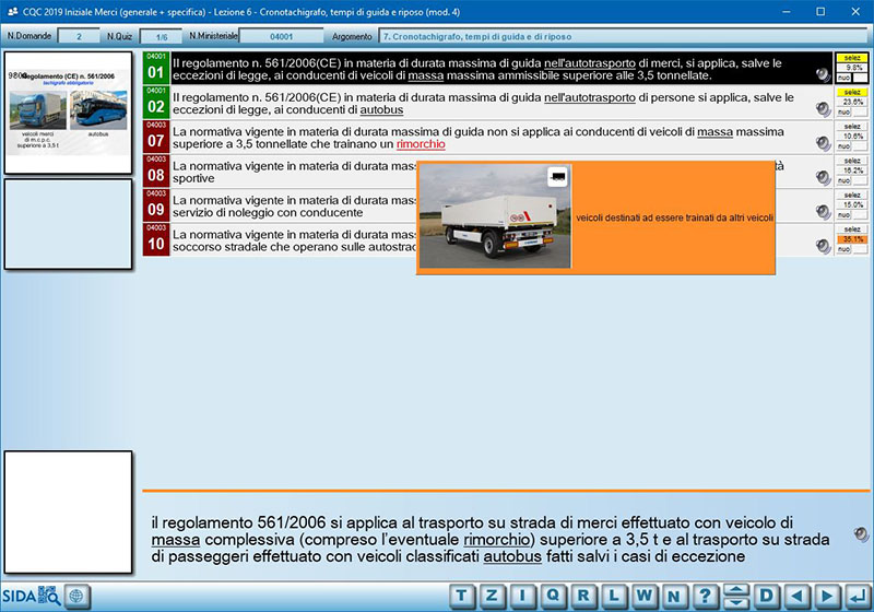 • Dizionario tecnico completo: comprende le definizioni dei termini tecnici del Codice della strada ma anche della contrattualistica internazionale per il trasporto merci e/o persone utilizzati nei quiz ministeriali per la CQC (ad esempio: "Pneumoidraulica", "Usufrutto" oppure anche "Multilaterale"). Questo vocabolario, che riguarda i termini più tecnici e difficili, comprende 458 definizioni.