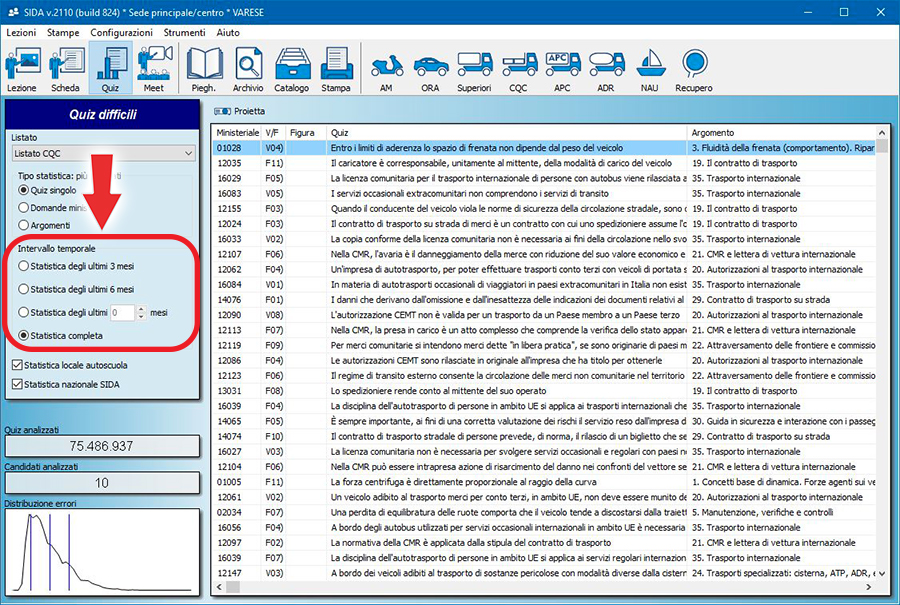 Nella scelta dell'intervallo temporale da prendere come riferimento per la statistica dei quiz più sbagliati, si può scegliere come configurare i blocchi di intervalli temporali nei mesi analizzati (3 mesi, 6 mesi, tutti i mesi).