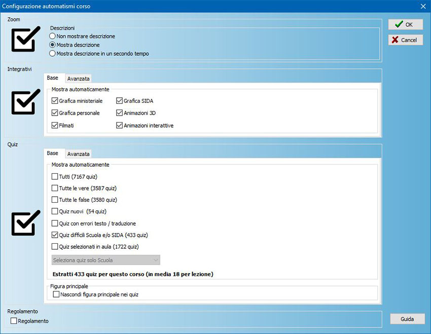 Inoltre, SIDA mantiene le configurazioni impostate in ogni singola lezione anche dopo l'uscita da essa, così come già avviene per la configurazione del corso. Con questa nuova funzione si raggiunge una maggiore flessibilità nella configurazione di ogni singola lezione che potrebbe essere diversa da un'altra, mantenendo poi le singole impostazioni anche una volta usciti dalla lezione stessa.