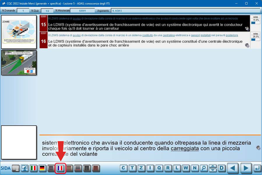 Con questo aggiornamento è disponibile, sia nel modulo Aula sia nel modulo Quiz, la traduzione ufficiale in francese del listato, già pubblicata in SIDA Quiz App.