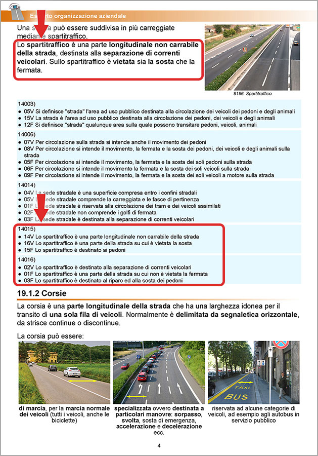 In questo modo il candidato ha subito evidenza delle parole chiavi utilizzate nei quiz e riesce a studiare più velocemente e con maggiore efficacia (lo studio è agevolato anche in caso di candidati stranieri o DSA).