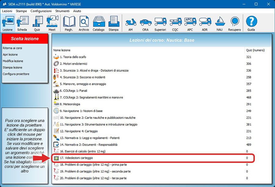 Questo aggiornamento implementa in SIDA Aula le videolezioni di carteggio (per patente senza limiti dalla costa).