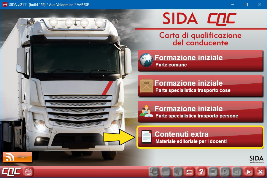 Per accedere alla nuova funzione, aprire la Guida Rapida CQC, click su "Formazione iniziale", click su "Contenuti extra".
