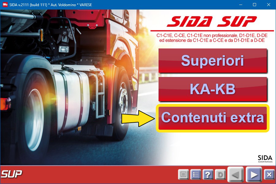 Tutto il materiale didattico contenuto nella sezione "Contenuti extra" è reperibile anche dall'area personale del sito www.patente.it (accesso riservato ai clienti SIDA con credenziali, eventualmente da richiedere in amministrazione SIDA - tel. 0332/511550).