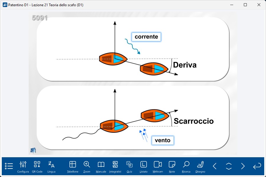 Le lezioni riflettono la suddivisione ministeriale in quanto i contenuti sono quelli ministeriali specifici per la patente nautica D1.
