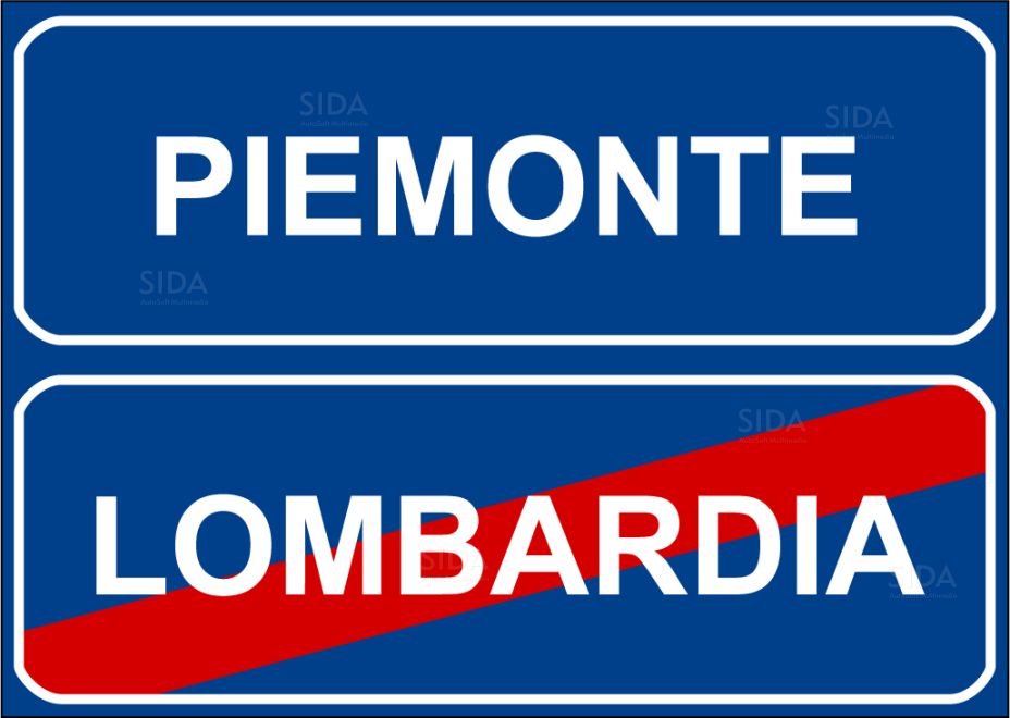 7. I segnali INIZIO E FINE REGIONE (fig. II.275) e INIZIO E FINE PROVINCIA (fig. II.276) sono a fondo verde o blu, in relazione al tipo di strada sulla quale sono installati, con cornici ed iscrizioni bianche. Il nome della regione o provincia in cui si entra è posto superiormente, quello della regione o provincia da cui si esce, posto inferiormente, è barrato con una fascia obliqua rossa, come nel segnale di fine centro abitato. Le dimensioni suggerite del segnale sono di 90x200 cm.