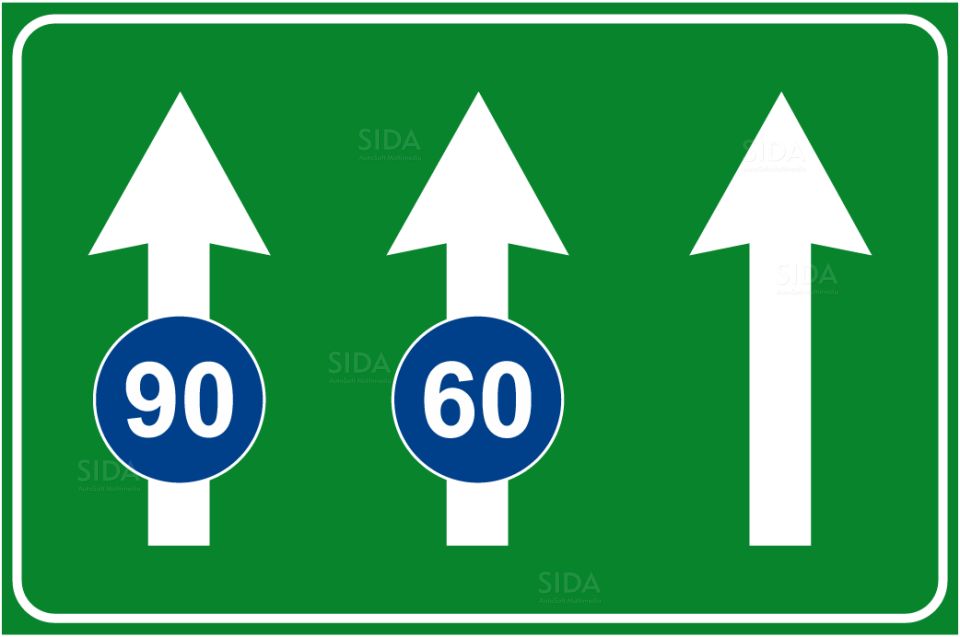 (*) Se il passo o il tratto terminale della strada è chiuso, il pannello "a" mostra il rosso e reca l'iscrizione "chiuso" ripetuto nelle lingue indicate in figura. Se il passo è aperto, il pannello "a" mostra il verde e reca l'iscrizione "aperto", ripetuto nelle stesse lingue. Se il passo è aperto, il pannello bianco "c" non porta alcuna iscrizione ed il pannello bianco "b", secondo lo stato della percorribilità, non reca alcuna iscrizione oppure mostra il segnale della figura II.87 con altezza di 30 cm: CATENE DA NEVE OBBLIGATORIE, ovvero i simboli II.181 e II.182: PNEUMATICI INVERNALI O CATENE RACCOMANDATI (figg. II.331, II.332, II.333). Se il passo è chiuso, il pannello bianco "c" può recare il nome della località e della progressiva chilometrica sino alla quale la strada è aperta ed il pannello "b", secondo lo stato di percorribilità fino alla località suddetta, mostra il segnale della figura II.87: CATENE DA NEVE OBBLIGATORIE ovvero i simboli II.181 e II.182: PNEUMATICI INVERNALI O CATENE RACCOMANDATI (figg. II.334, II.335, II.336). La rifrangenza è applicata a tutti i colori. Dimensioni consigliate: cartello principale 200x135 cm; pannelli a, b e c 35x105 cm. 19. Il segnale USO CORSIE (figg. II.337, II.338, II.339, II.340) indica le modalità per l'utilizzo delle singole corsie costituenti la carreggiata ovvero disponibili nel senso di marcia. Può essere utilizzato per indicare la corsia destinata ai veicoli che procedono a velocità tale da costituire intralcio alla circolazione. Le dimensioni per le autostrade e altre strade aventi più corsie sono riportate nella figura II.337. I segnali di prescrizione inseriti nei cartelli hanno il diametro di cm 60 o 40. 20. Il segnale VARIAZIONE CORSIE DISPONIBILI deve essere usato per segnalare una variazione del numero delle corsie disponibili nel senso di marcia in riduzione (figg. II.341 e II.343) ed in aumento (figg. II.342 e II.344). Le dimensioni sono le stesse del segnale di cui al comma 19. Il segnale di preavviso, costituito da analogo segnale completo di pannello modello II.1, deve essere impiegato quando la corsia abbia lunghezza superiore a 500 m e compatibilmente con le condizioni e caratteristiche della strada. 21. Il segnale AUTOSTRADA (fig. II.345) indica l'inizio di un'autostrada; le sue dimensioni sono di 300x170 cm, in formato ridotto (simbolo II.161), identifica, su segnali di preavviso, di preselezione, di direzione e di conferma, l'itinerario verso sistemi autostradali tangenziali od anulari. In funzione di preavviso, posto all'inizio del tronco di raccordo tra viabilità ordinaria ed autostrada, vale a ricordare le norme di circolazione vigenti in autostrada (fig. II.347); le sue dimensioni minime sono di 300x120 cm la parte sinistra e 300x180 cm la parte destra. 22. Il segnale FINE AUTOSTRADA (fig. II.346) è identico al segnale AUTOSTRADA, ma con una barra diagonale rossa. In funzione di preavviso è corredato da un pannello modello II.1 e le sue dimensioni sono uguali a quelle del segnale autostrada. 23. I segnali INIZIO STRADA EXTRAURBANA PRINCIPALE e FINE STRADA EXTRAURBANA PRINCIPALE sono uguali a quelli di cui ai commi 21 e 22 ma con colore di fondo blu (figg. II.345, II.346, II.347). 24. Il segnale SENSO UNICO PARALLELO (fig. II.348) deve essere usato nelle intersezioni per indicare che sulla strada intersecata la circolazione è regolata a senso unico, precisandone nel contempo il senso. È installato parallelamente all'asse stradale ed è opportuno che sia combinato con il segnale NOME-STRADA assumendone identiche dimensioni. Se l'intersezione è semaforizzata i due segnali possono essere applicati al palo sopra la lanterna semaforica. Se il segnale del SENSO UNICO è impiegato da solo ha dimensioni normali di 25x100 cm. 25. Il segnale SENSO UNICO FRONTALE (fig. II.349) è installato normalmente all'asse della carreggiata e può integrare l'indicazione del segnale di cui al comma 24. Il segnale indica che la strada è a senso unico e che quindi i conducenti possono utilizzarne l'intera larghezza. Viene installato a destra e a sinistra, all'inizio del senso unico, con eventuali ripetizioni a sinistra. Le dimensioni sono quelle di tabella II.6. I segnali SENSO UNICO PARALLELO e SENSO UNICO FRONTALE devono essere installati dopo aver posto in opera il segnale di SENSO VIETATO dal lato interdetto all'entrata. 26. Il segnale PREAVVISO DI DEVIAZIONE CONSIGLIATA AUTOCARRI IN TRANSITO (fig. II.350) deve essere usato per presegnalare l'itinerario consigliato ai veicoli di massa superiore a 3,5 t per evitare che attraversino un centro abitato o parte di esso. Nel punto della deviazione deve essere usato il segnale DIREZIONE AUTOCARRI CONSIGLIATA (fig. II.351). 27. Il segnale LIMITI DI VELOCITÀ GENERALI (fig. II.352) deve essere usato particolarmente in prossimità delle frontiere nazionali per indicare i limiti di velocità generali in vigore in Italia. Il nome, il contrassegno e la bandiera italiana sono posti nella parte alta del cartello. Il segnale indica i limiti di velocità generali in vigore nel seguente ordine dall'alto verso il basso: a) nel primo riquadro il limite massimo di velocità nei centri abitati; Il bordo del cartello e la parte superiore sono a fondo blu o verde a seconda della viabilità su cui il segnale è installato, i riquadri sono a fondo bianco, i simboli dei primi due riquadri sono neri e il secondo è barrato da una linea rossa obliqua. |